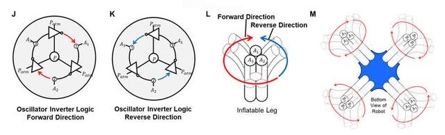 Melalui osilator cincin seperti itu, sinyal osilasi dapat dihasilkan. Kemudian sinyal osilasi dihasilkan oleh elemen logika pneumatik sebagai respons terhadap input sensor dan gaya yang dihasilkan. Proses menghasilkan sinyal berosilasi mirip dengan penggunaan generator pola sentral (CPG) oleh organisme alami. Pengembangan Robot ini mirip hewan berkaki empat untuk mencapai gerakan berulang dari anggota tubuh seperti berjalan, terbang dan berenang.