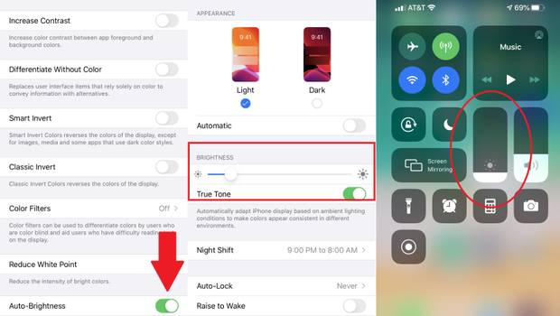 Nyalakan kecerahan otomatis, iPhone akan menyesuaikan kecerahannya berdasarkan situasi pencahayaan Anda saat ini. Jika Anda memiliki cukup cahaya, layar akan meredup sendiri untuk menghemat masa pakai baterai.